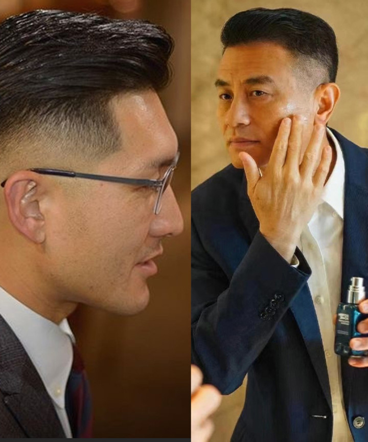 上面的头发适当修剪去薄,沿着三七分露出额头,不装嫩也不显老,看着儒雅绅士。并且这种发型可以修饰脸型,对脸型偏长的中老年男人也十分友好。