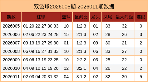 开奖回顾:双色球第2026011期奖号为:02、03、04、20、31、32 + 04。
